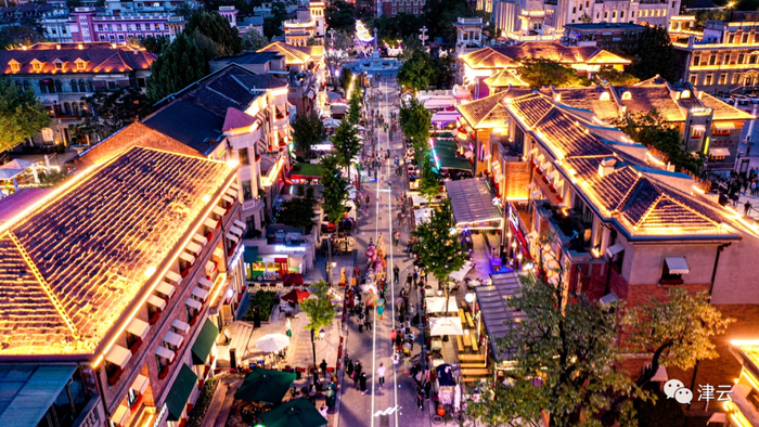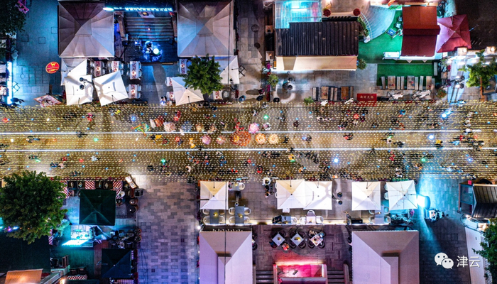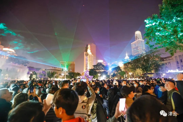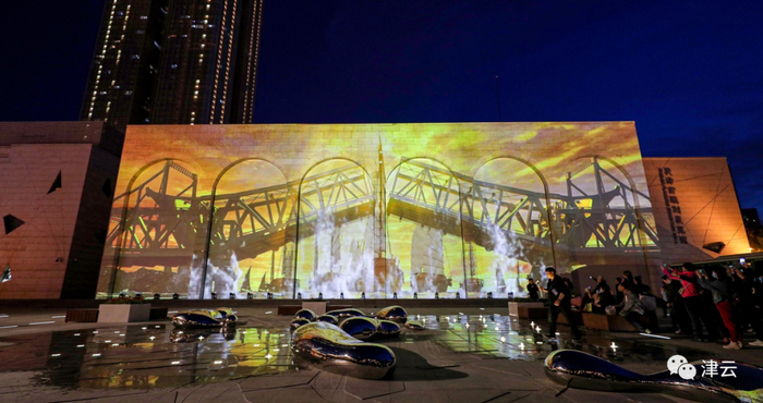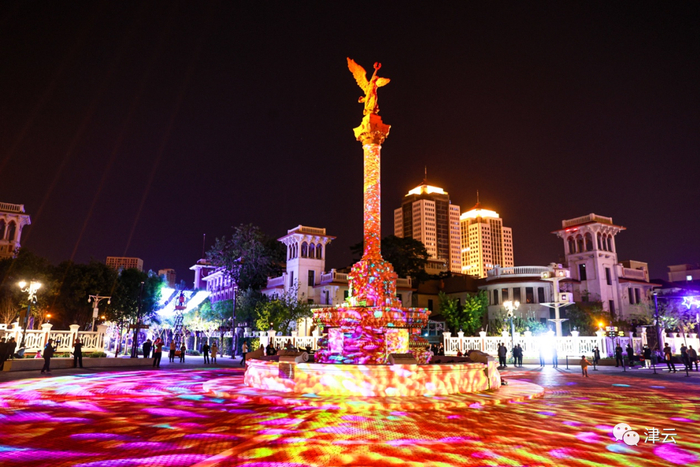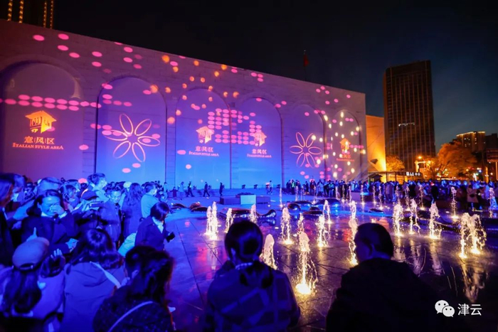 在天津市规划展览馆前广场则是一个特色音乐喷泉,设置了气势恢宏的灯光秀,地面上意风区雕刻地图和以“源”命名的创意雕塑,大家可以在这里看演出、听音乐、赏美景。