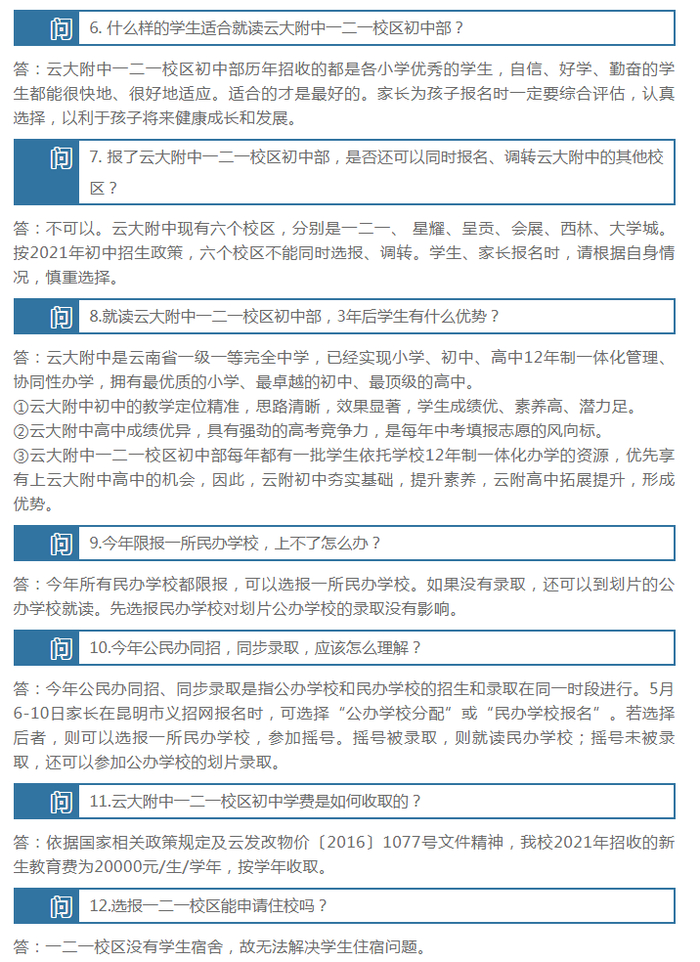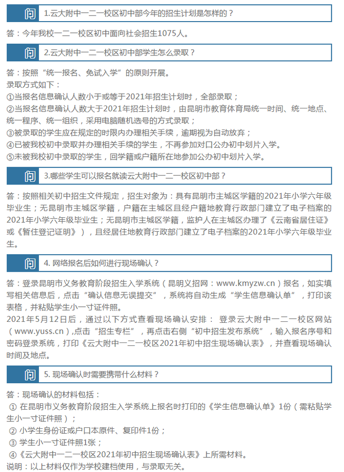 今天,云大附中通过官方微信发布了一条消息,解答了详细解答了一二一校区2021年初中招生的一些热点问题。详细如下:
