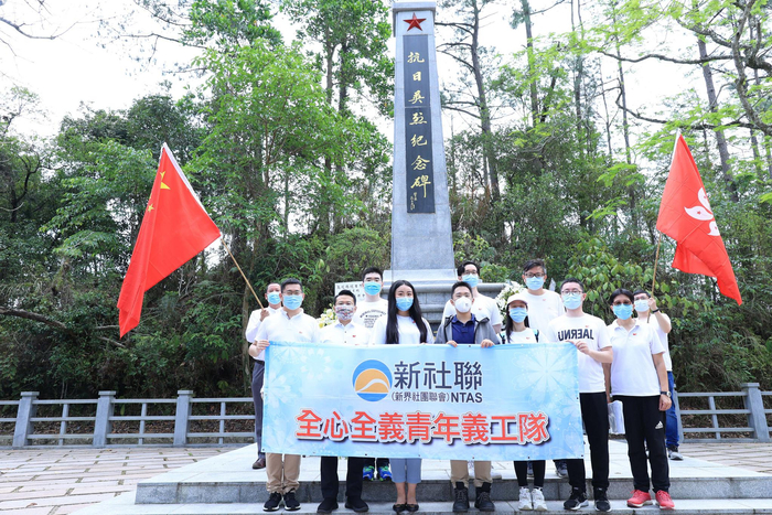 2021年5月2日上午,新社联全心全义青年义工队、香港湖南青年会等青年社团组织开展了“勿忘初心 不负韶华”参观新界抗日旧址活动,近50名香港青年代表前往位于远郊沙头角的乌蛟腾抗日英烈纪念碑,缅怀抗战先烈,接受爱国爱港教育,迎接“五四”青年节。港区全国人大代表、民建联副主席、新社联理事长陈勇先生应邀出席。