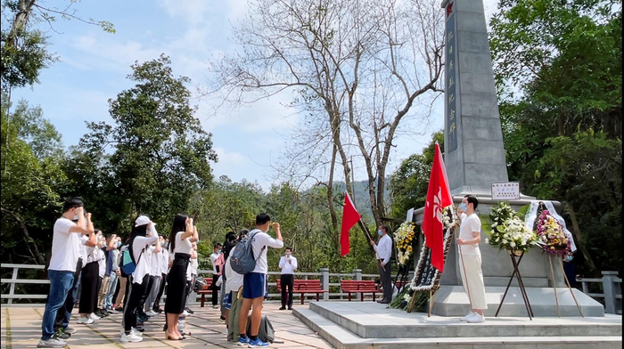紧接着,陈勇先生作为特邀嘉宾向青年们讲述了乌蛟腾村的抗战历史。据纪念碑碑文记载,1941年12月8日,日本法西斯发动太平洋战争,港九新界沦为日本侵略者的占领区。为保卫家园,乌蛟腾村民纷纷加入港九人民抗日游击队,英勇杀敌,其中多位村民献出了宝贵的生命。