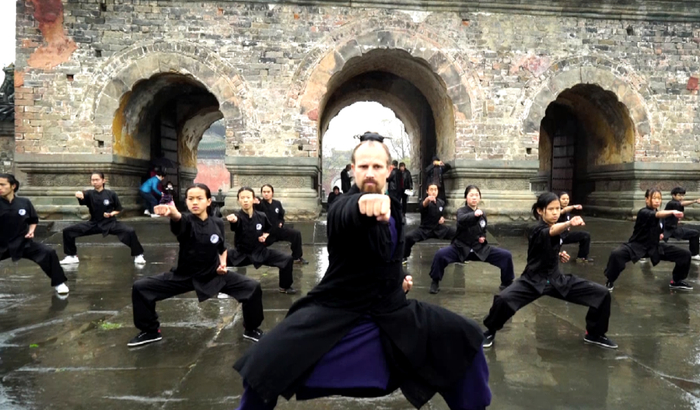 武当山、玉虚宫,听到这些,熟悉中国文化的人,总会联想到凡间仙境或是仙风道骨。但恐怕很少会有人想到,一个地道的美国小伙子,会在武当山上、玉虚宫前,教别人打拳耍棍……