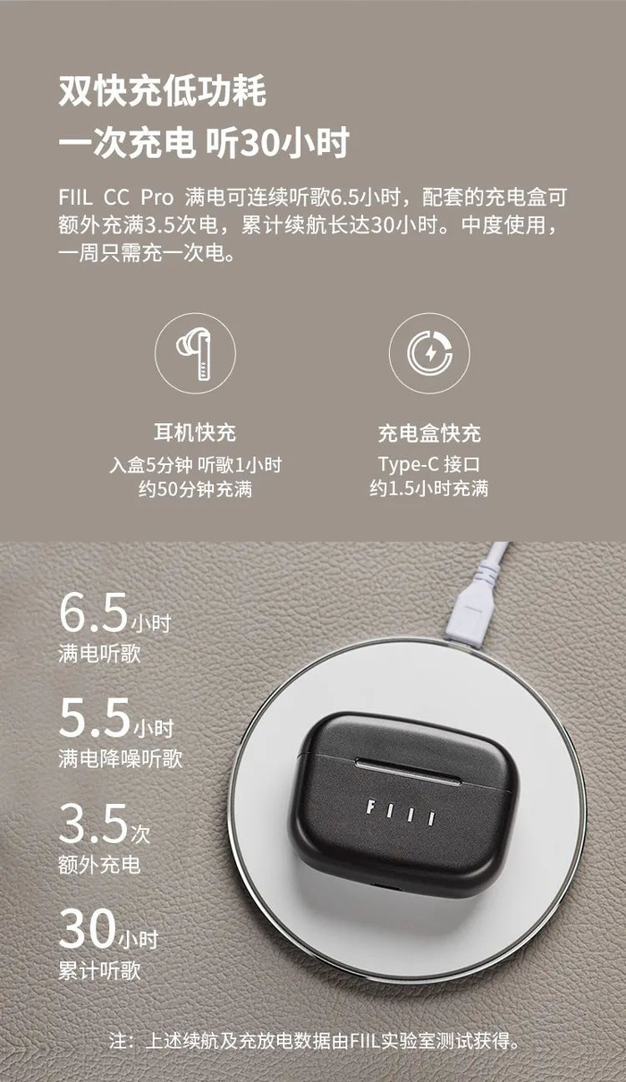 FIIL CC Pro加入了充电盒快充,耳机入盒5分钟,超长听歌1小时!