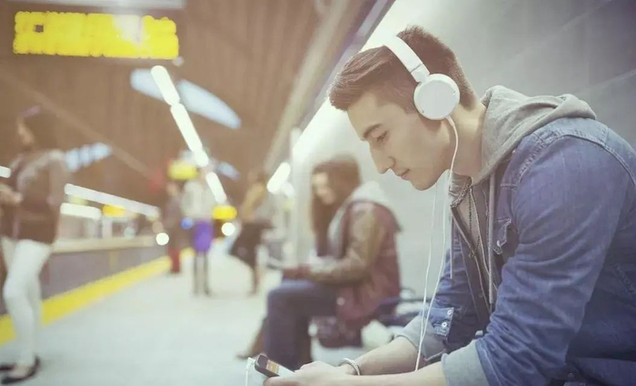 可以看到小姐姐戴上耳机后就沉浸在自己的世界里了,几乎听不见外界的声音。