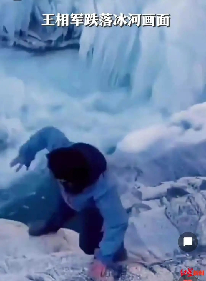 王相军跌落冰瀑的画面