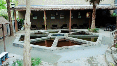 这是一个很特别的温泉池,也是最推荐的。汤池呈八卦式设计,有8种不同功效的小池,分别放了八种不同的中药,达到对人体健康不同的功效。