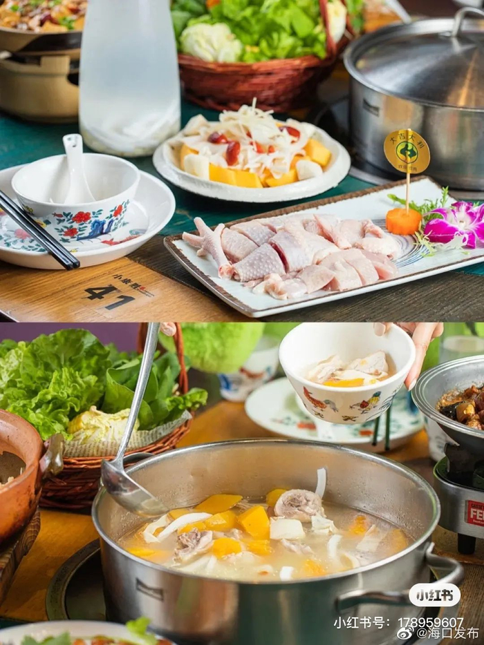 除了大名鼎鼎的“海南鸡饭”,目前比较网红的吃法是——三两只青椰取水刮肉,与两斤一只的小文昌鸡大火快煮。三分钟后,收获一锅鲜甜。