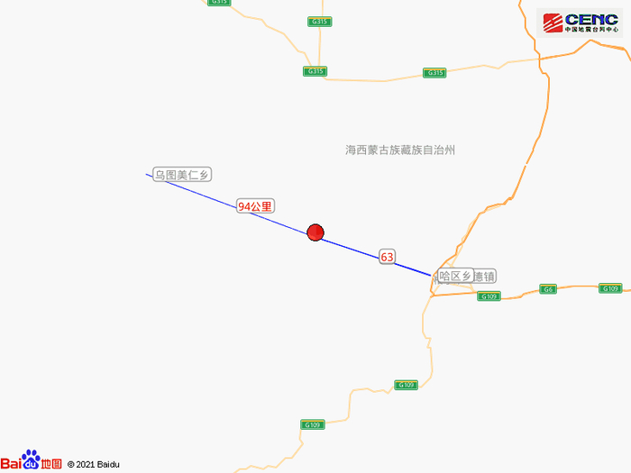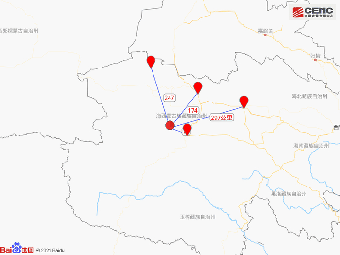 周边县城:震中距格尔木市71公里、距大柴旦行政委员会174公里、距德令哈市297公里,距海西蒙古族藏族自治州298公里,距西宁市681公里。