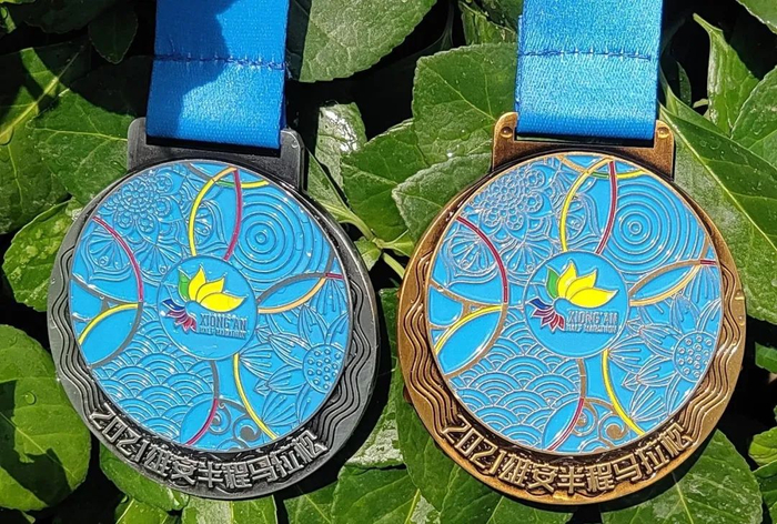本届赛事,半程马拉松项目奖牌为古金色,健康跑项目奖牌为古银色。5月9日,我们一起用脚步丈量新生之城,相信这枚完赛奖牌将会带来永久的美好记忆。