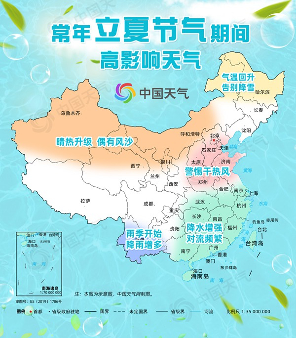 据中国天气网,立夏以后,北方气温上升较快。不过虽然升温较快,但是北方夏季往往还不会真正到来。而南方的海南、广东、广西等地已是夏季,且随着立夏节气,长江以南地区基本进入夏季。由于气温上升,江南、华南一带也进入强对流天气比较频繁的阶段,而且雨量和雨日也会增多。①