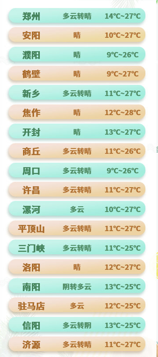 以省会郑州为例:6日,节后第一个工作日,最高气温将达33℃!夏装请就位!