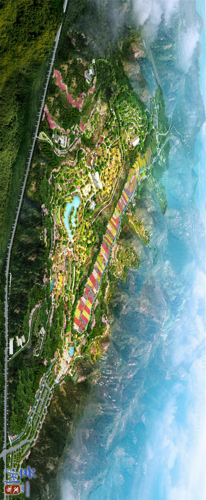 4.主入口区域位于园区主体南侧。主要包含停车、大门售票及服务、游客服务等功能,是游客到达、出发、离开的主要区域。