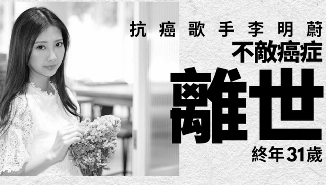 歌手李明蔚患癌离世