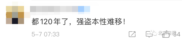 网友留言感慨:“都120年了,强盗本性难移!”