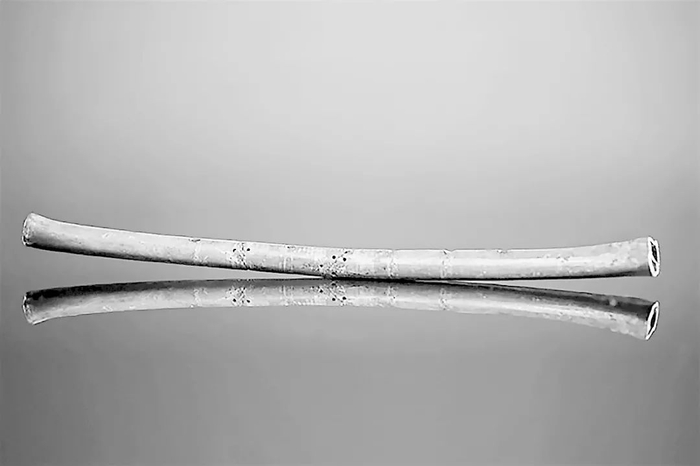 河南舞阳贾湖骨笛。贾湖遗址距今7800年至9000年,出土的骨笛是目前中国发现的时代最早的乐器实物,这支收藏于河南博物院。