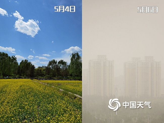 北京5月4日和5月6日对比图。(左图/张方丽 右图/人民视觉)