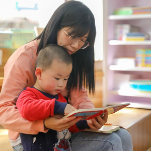 4月21日,在湖南省衡阳市衡阳县船山书城,一名母亲陪着孩子阅读书籍。 新华社发(刘欣荣 摄)