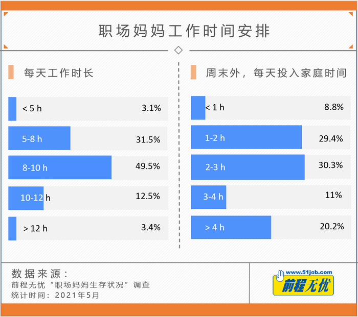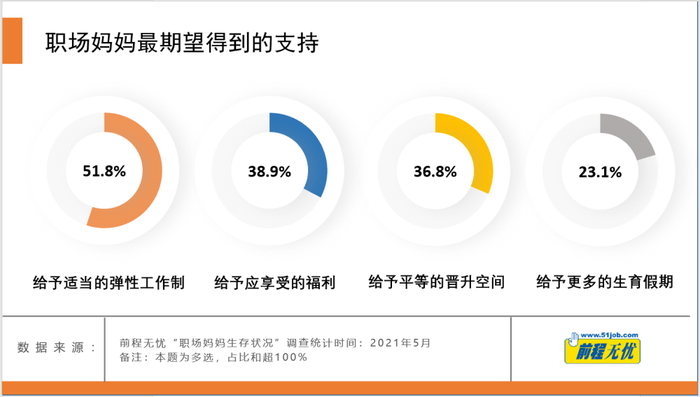 在母亲节来临之际,人力资源服务商前程无忧发布《2021职场妈妈生存状态调查报告》,通过近万名受访者调查,解析职场妈妈在当下职场环境下的生存状态,呼吁社会和雇主关注和改善这一群体的工作生活。