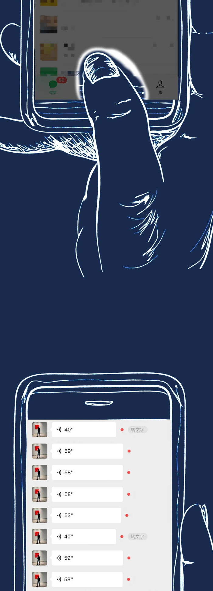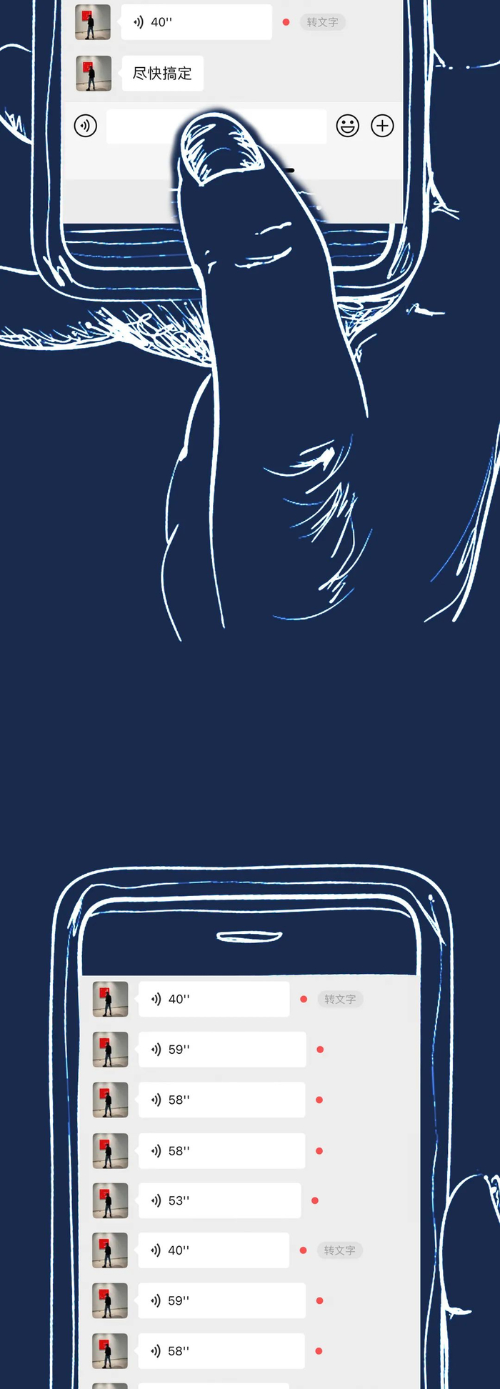 发几十上百条语音交代事情,最后听中断了或是忘记了什么信息,都得从头再来