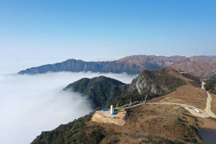 广西龙胜各族自治县平等镇南山风电项目建设工地(无人机照片)。(新华社)