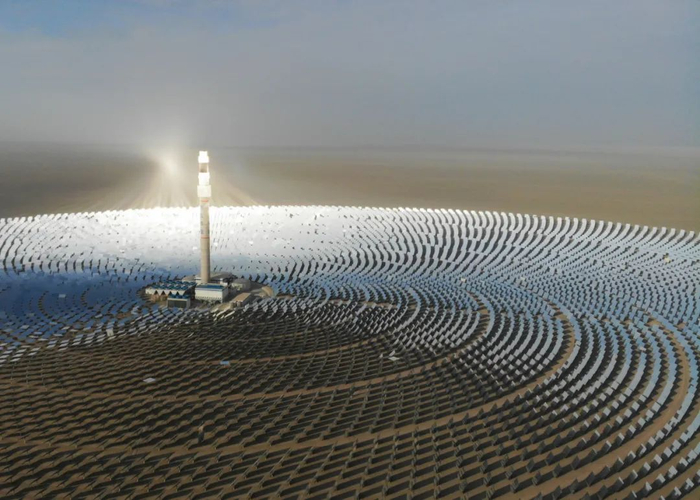 敦煌100兆瓦熔盐塔式光热电站(无人机照片)。马希平摄(新华社)