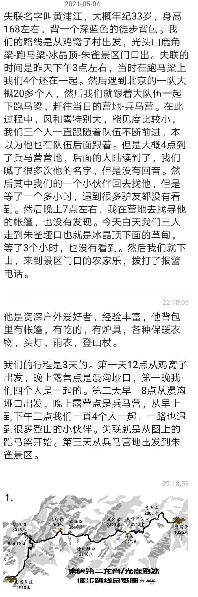 其朋友的前同事在穿越西安秦岭时