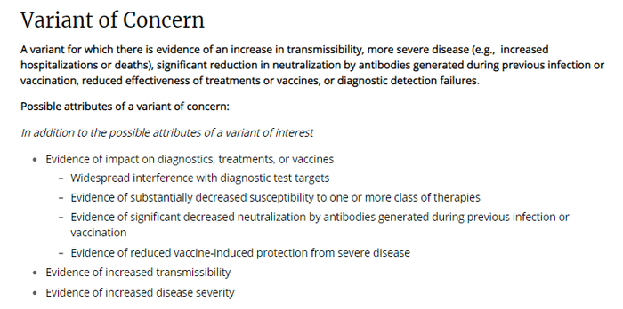 但实际上,这个“variants of concern”是一个特有的词组。根据美国疾控中心的介绍,“variants of concern”指的是那种具有较高传染性,更容易引发重症,且更难以被免疫系统和疫苗中和掉的变异毒株。而且这种变异毒株一旦被出现,都会立刻报给WHO。