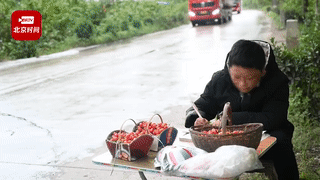 心疼!“奥特曼”路边摆摊卖樱桃