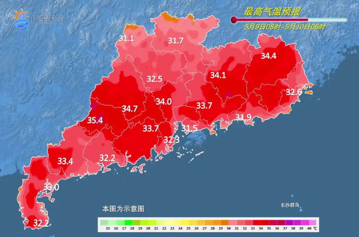 9日,粤北、粤西有(雷)阵雨局部暴雨,其余市县多云局部有阵雨。最高气温:粤北的北部市县、沿海市县29℃~32℃,其余市县33℃~35℃。