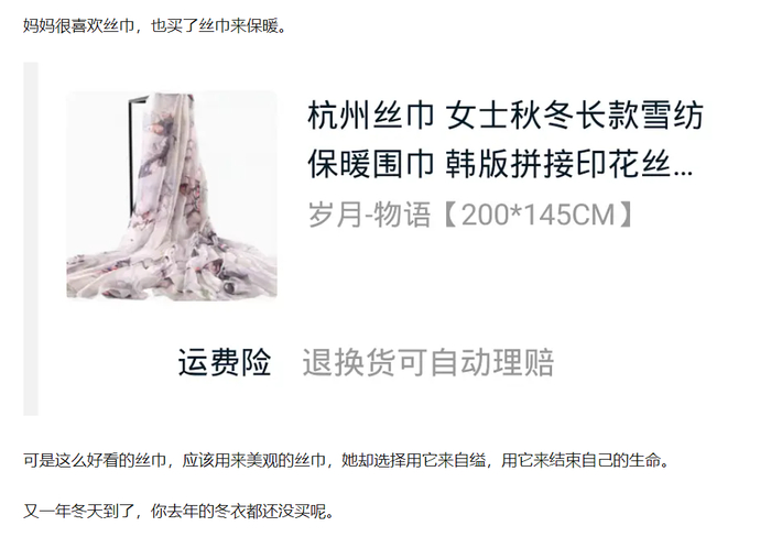 很多留言都在说,看到丝巾那一刻,心里咯噔了一下,瞬间难过。