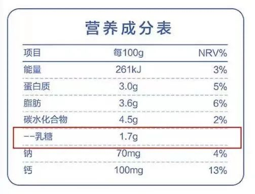 提醒:如何选择低乳糖牛奶和无乳糖牛奶呢?教你一个小妙招,学会看食物营养成分表:低乳糖牛奶(乳糖含量≤2g/100ml),无乳糖牛奶(乳糖含量≤0.5g/100ml)。