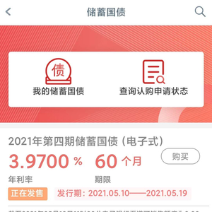 2021年第三期和第四期储蓄国债(电子式)均为固定利率、固定期限品种,最大发行总额400亿元。其中,第三期期限3年,票面年利率3.8%,最大发行额200亿元。第四期期限5年,票面年利率3.97%,最大发行额200亿元。
