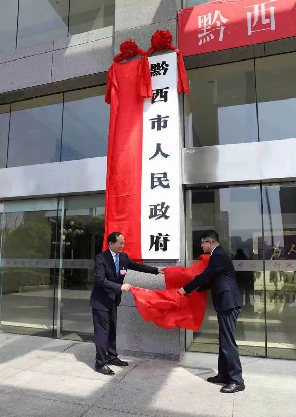 毕节市委副书记、市政府市长杨昌鹏,黔西市委副书记、市政府市长朱宇翔为“黔西市人民政府”揭牌