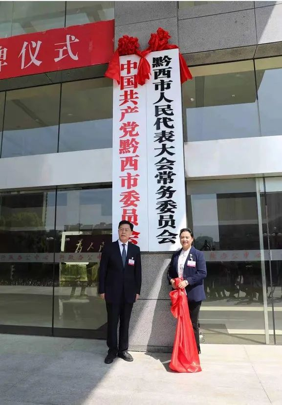 毕节市人大常委会主任张翊皓、黔西市人大常委会主任罗智琼为“黔西市人民代表大会常务委员会”揭牌