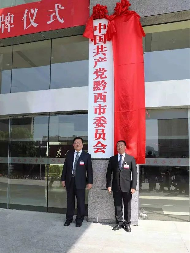 省政协副主席、毕节市委书记周建琨,黔西市委书记林松为“中国共产党黔西市委员会”揭牌