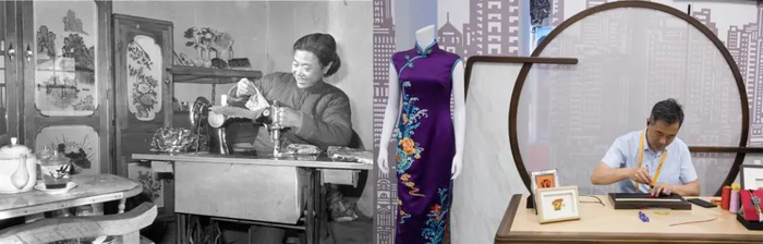 这是一张拼版照片:左图为1980年,吉林省洮安县岭下公社红石岭大队的赵淑珍用新添置的缝纫机缝制衣服(新华社记者袁兆义 摄);右图为2021年5月8日,在海南举行的首届中国国际消费品博览会各省区市展区,来自上海的江先生在手工制作旗袍盘扣,整件旗袍都是纯手工制作(新华社记者金立旺 摄)。新华社发
