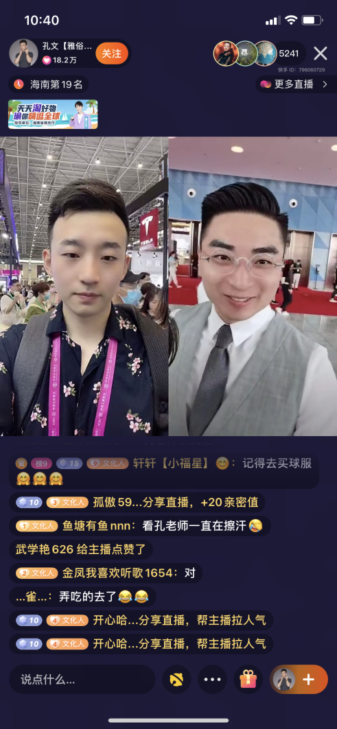 (孔文和海南台主持人海跃、瑜大公子在直播嗨逛消博会)