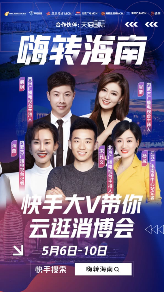 值得注意的是,国民短视频直播平台快手在5月7日至8日同步推出“嗨逛海南——快手大V带你逛消博会”直播活动,快手主持人大V海燕、岩清、杨威、晨枫、孔文,“快手海南好物金牌推荐官”瑜大公子与海南台主持人组团共逛消博会。