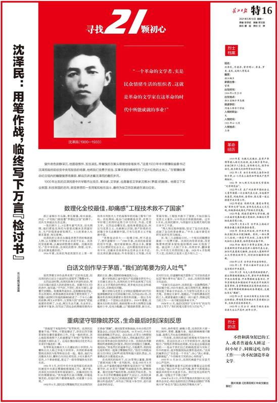 他是著名文学家沈雁冰(茅盾)的胞弟,考进我国历史上第一所培养水利技术人才的高等学府——河海工程专门学校,却痛感“工程技术救不了国家”,辍学赴日半工半读研究社会主义。他重病中仍坚守鄂豫皖苏区,生命最后时刻给中央提交一份长达1.3万字的报告,沉痛检讨“我们自己的路线差误与实际工作中的拙劣”。