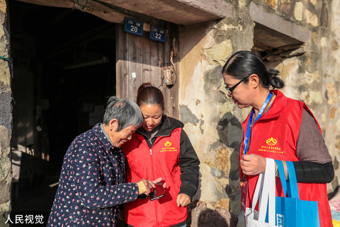 2020年11月4日,浙江舟山,新丰村人口普查员在泊塘岙入户登记(图片来源:CFP)