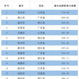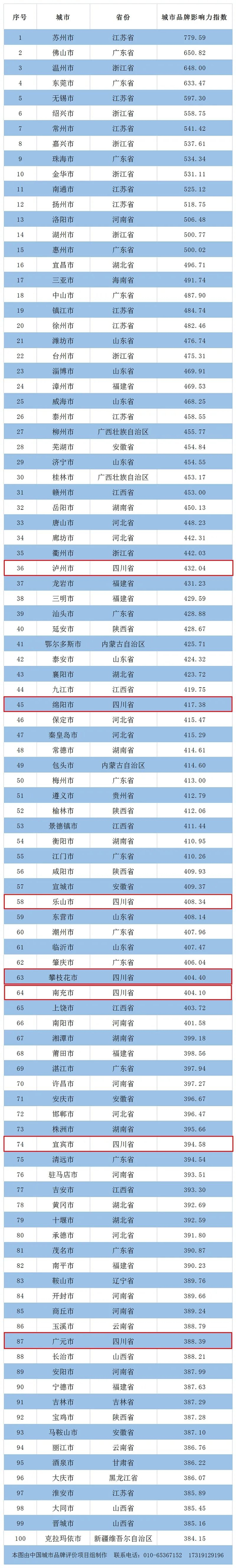 原标题:中国地级市品牌100强出炉,四川7市上榜!