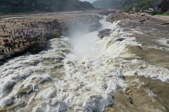 有研究者说,在壶口,洪水期里黄河最大流量可超每秒一万立方米,在那种情况下,壶口“水底冒烟”的景象也会随之消失。平常的时候,2000立方米每秒的流量或者再大些,人们看到的各种景象也就随之出现。曾经有记者从内蒙古包头出发,一直去到河南郑州附近的桃花峪黄河中下游分界处,说2000公里黄河,确乎变“清了”,那年的气候水文变化我没有研究过,是什么季节也记不清了,但在一般情况下,从托克托河口镇后,黄河还是黄颜色居多。也有人调查分析,在非汛期内,80%的黄河段落还是比较清的,这与近年来水土保持,坡地还林还草有大关系。甚至于在新一轮城镇化中,许多农民进城务工,不再从荒山上和沟豁地要粮,客观上也有利于植被自然恢复和土地的休养生息。