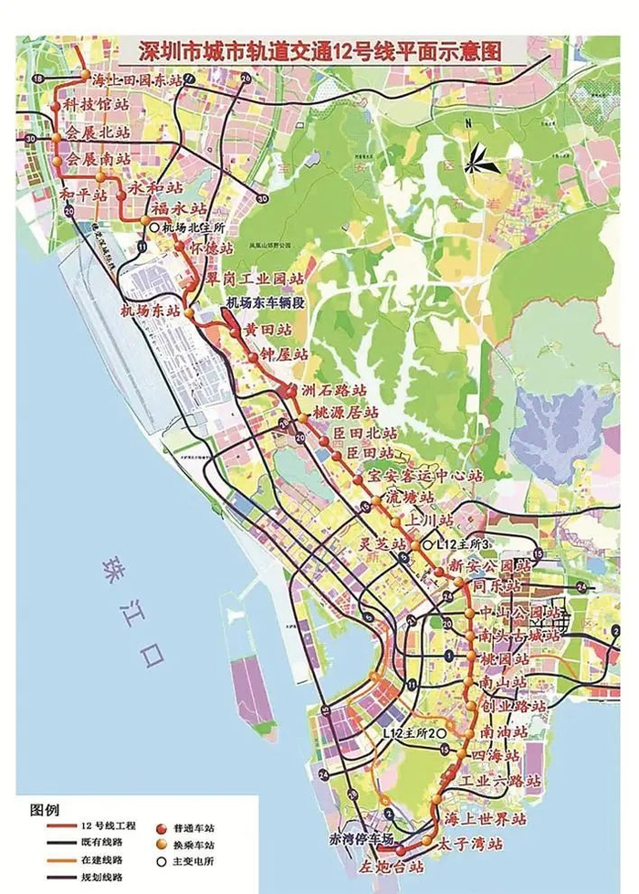 地铁12号线也是大湾区未来的重要动脉,线路全长约40.6公里,共设站33座,其中换乘站18座,预计2022年建成通车。
