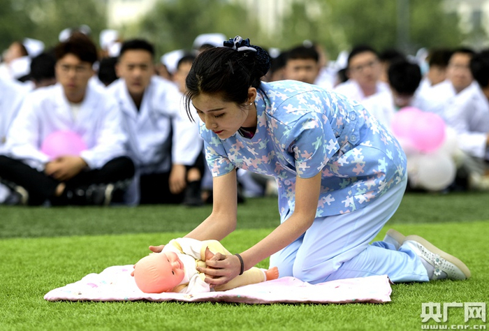 活动中,护理专业的学生进行了护理技能和礼仪展示。