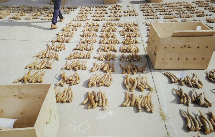 获得了经审批的销售配额后,药业公司从多名供货商处非法收购穿山甲甲片9890公斤和羚羊角制品968公斤。有了骗来的行政许可,非法收购的药材在药业公司转手对外出售时就有了“合法”的外衣。因为申报的野生动物制品专用标识不够用,药业公司还买了大量伪造标识。