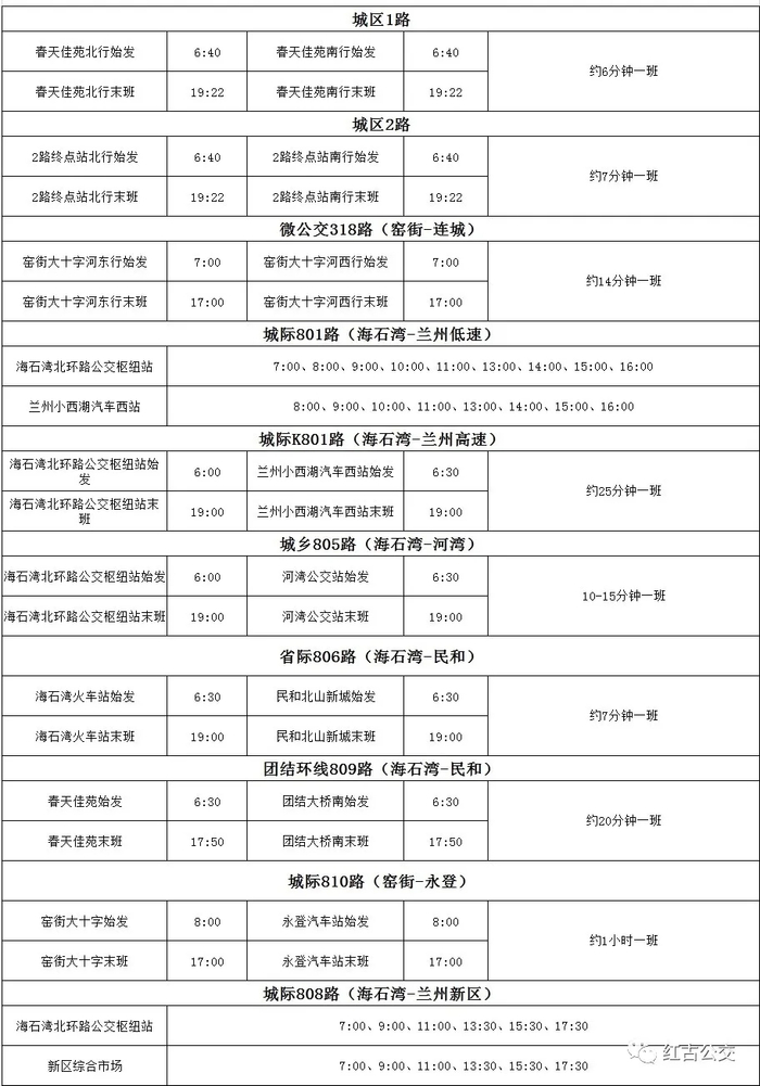 夏季来临,为满足广大市民出行需求,兰州市红古区公共交通服务有限公司5月9日起,开始实行公交车夏季运营时间,具体如下: