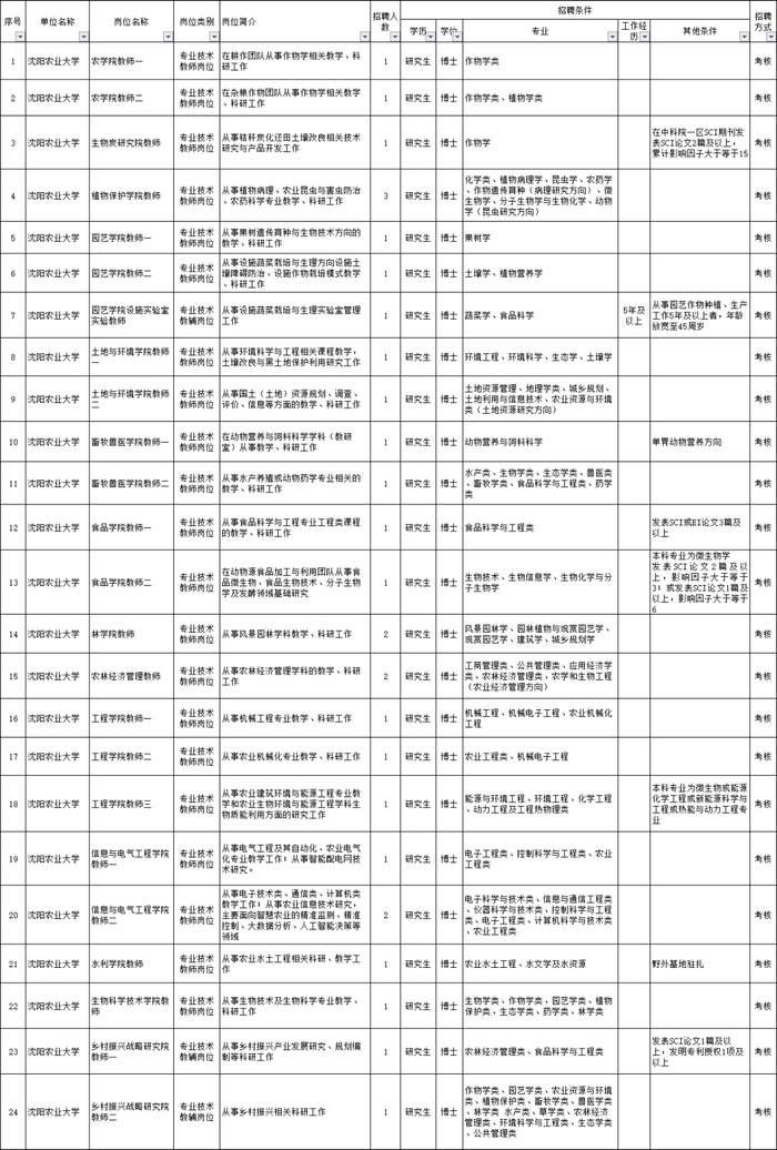 17.沈阳农业大学公开招聘29名高层次人才