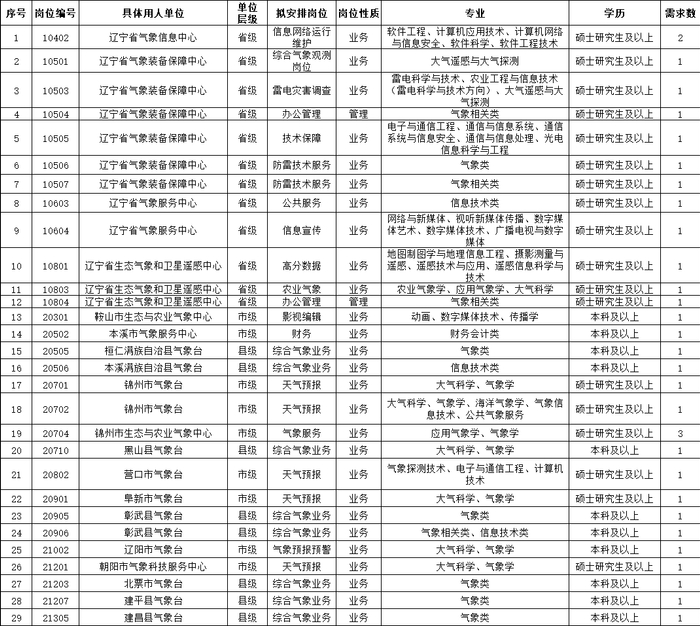 辽宁省气象部门招录32名工作人员