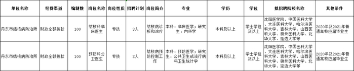 6.丹东市结核病防治所面向普通高校公开招聘6名2020年及2021年应届毕业生
