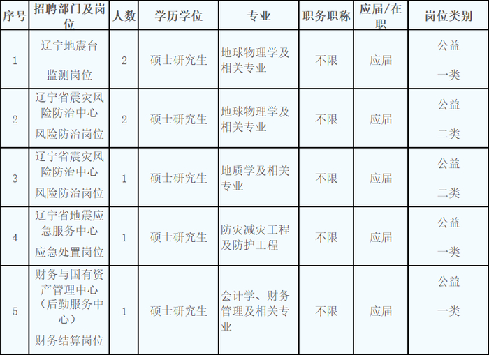辽宁省地震局公开招聘7名事业单位工作人员