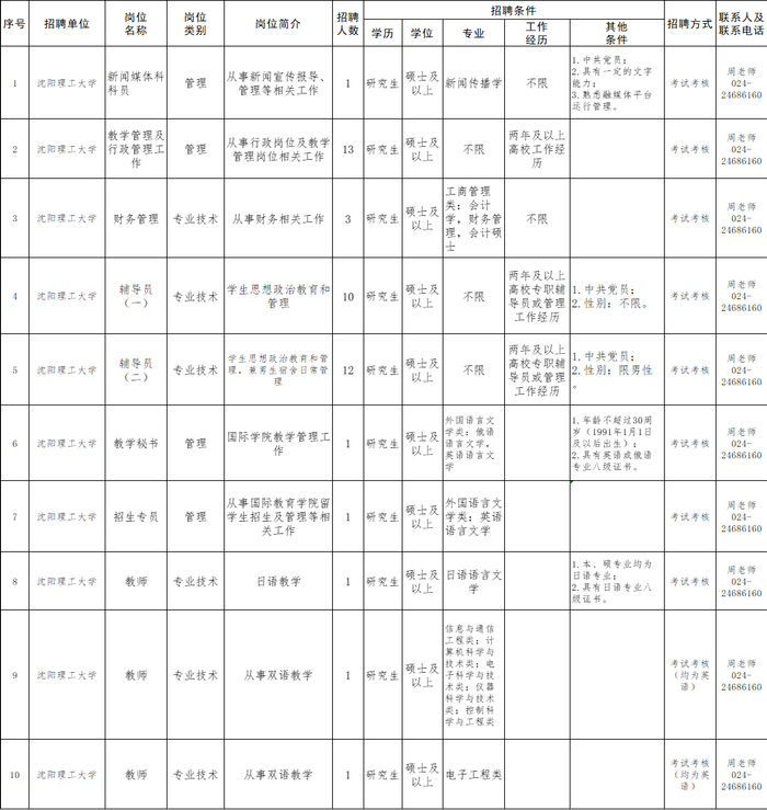 2.沈阳理工大学面向社会公开招聘44名工作人员